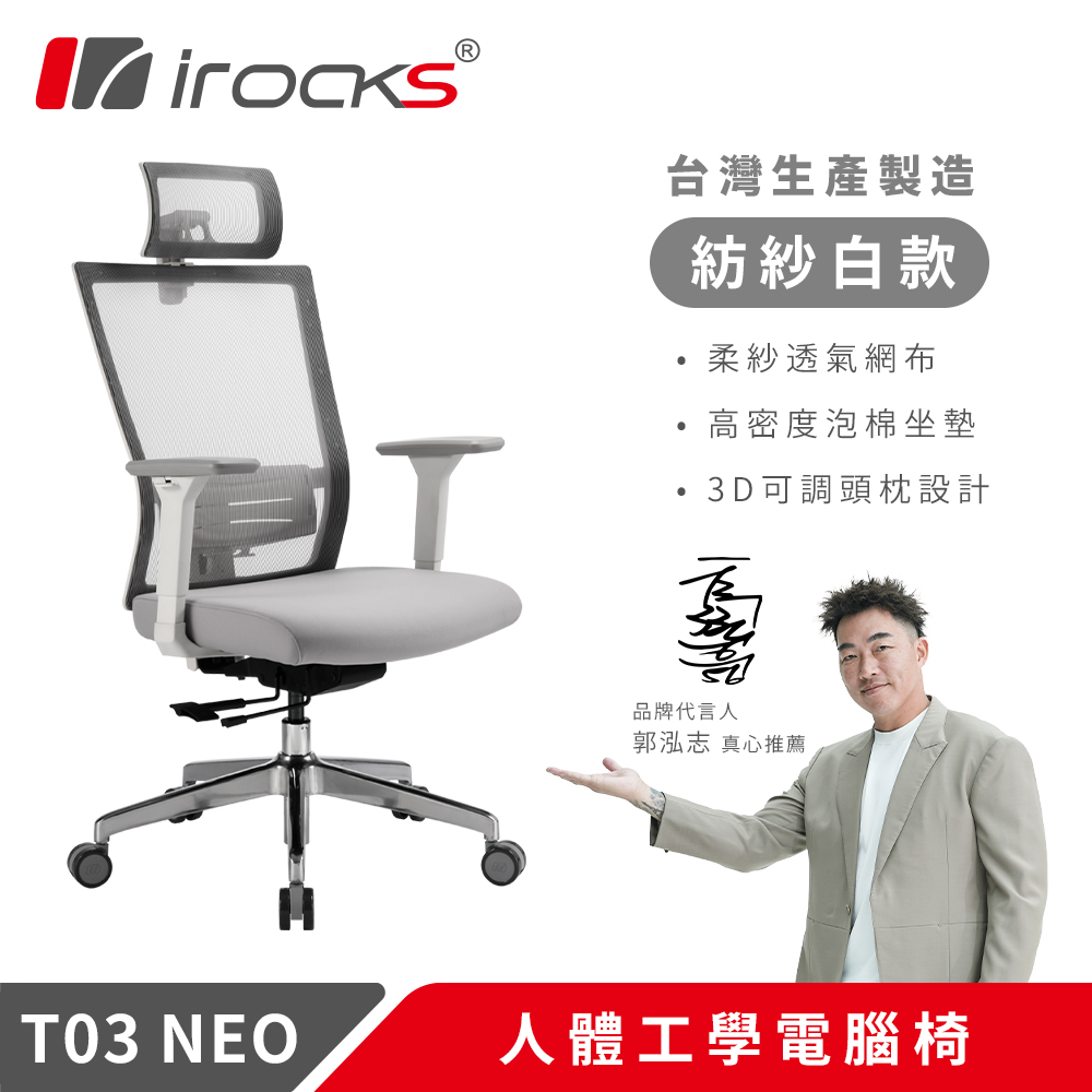 【iRocks】T03 NEO 人體工學椅 紡紗白