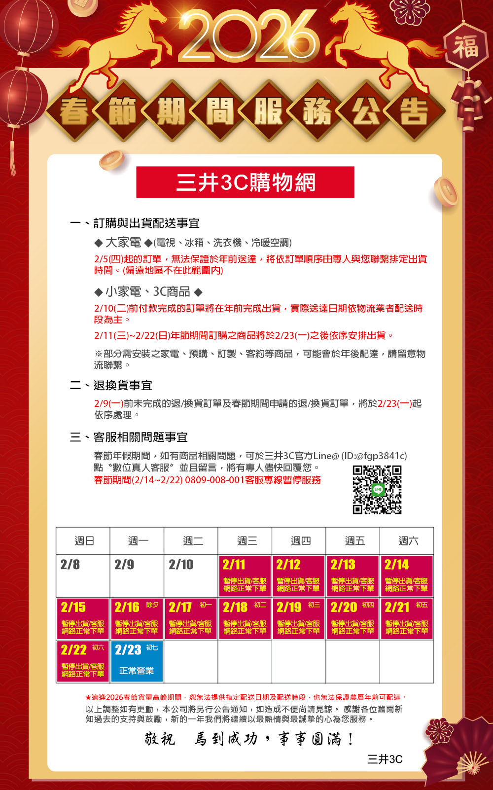 防詐騙提醒:三井3C絕不會以電話或簡訊通知訂單/分期出錯、或變更付款方式,更不會要您前往ATM進行任何操作!