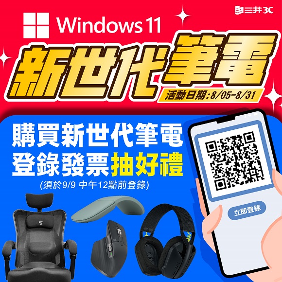 4.活動內容:在三井3C台中NOVA門市,購買WINDOWS 11 新世代筆電,即可參加發票登錄抽獎