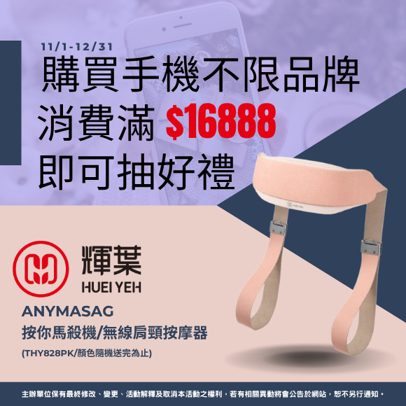 【買手機抽好禮】滿$16,888登錄抽輝葉肩頸按摩器