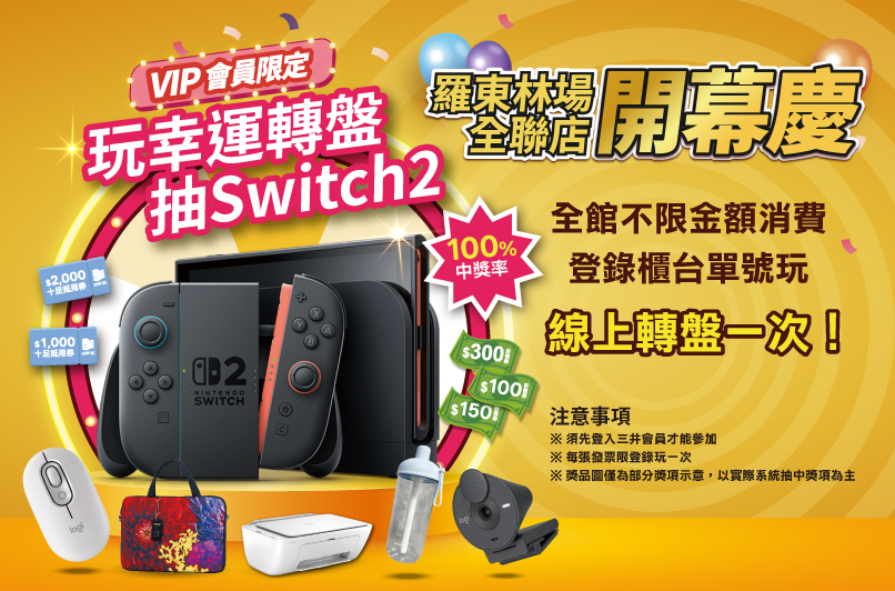 【羅東林場全聯店開幕慶】不限金額消費玩轉盤抽Switch2