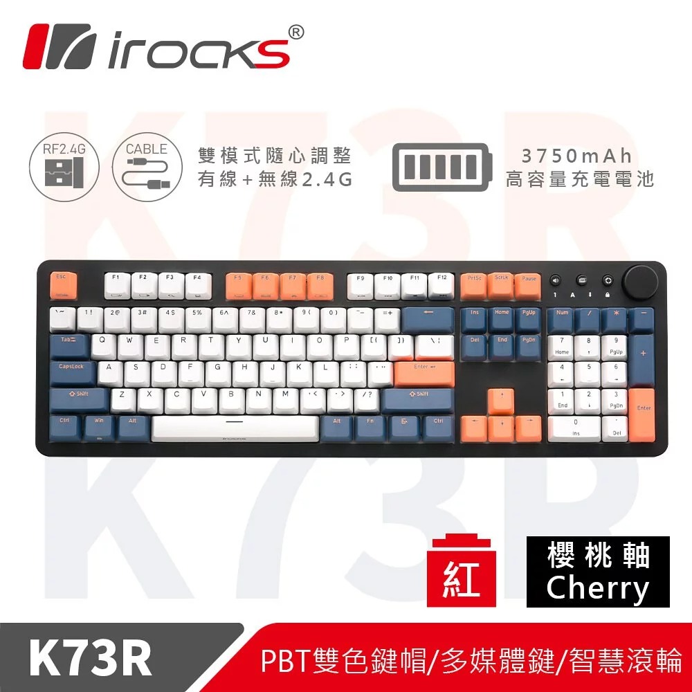 【iRocks】K73R PBT 夕陽海灣 無線機械式鍵盤|紅軸