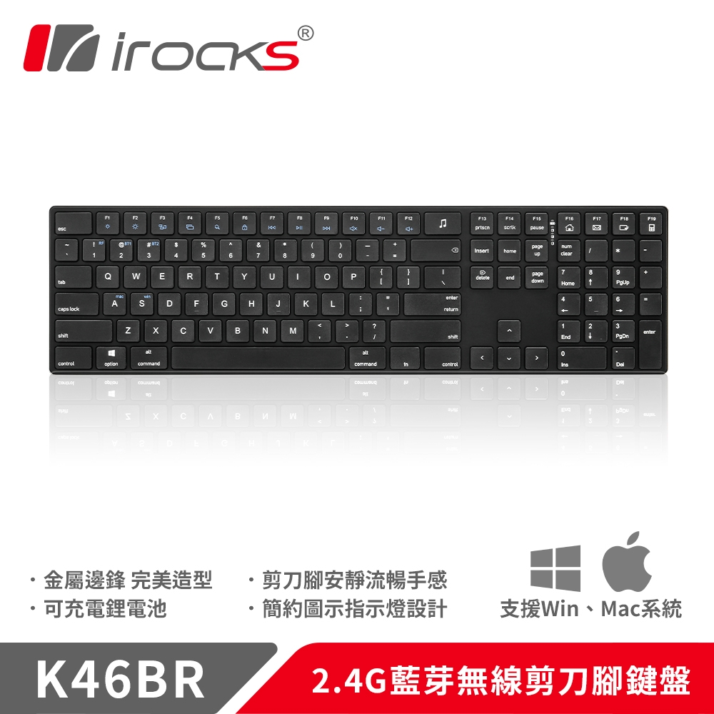 【iRocks】K46BR 2.4GHz 無線藍牙雙模剪刀腳鍵盤|黑色