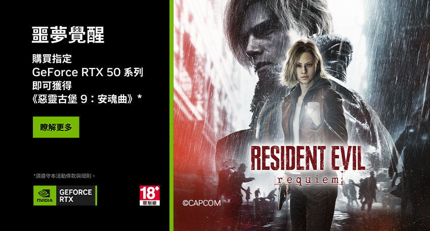 或搭載 RTX™ 5090、 5080、5070 Ti 、5070 筆電 GPU 的筆記型電腦,即可獲得《Resident Evil Requiem》標準版.