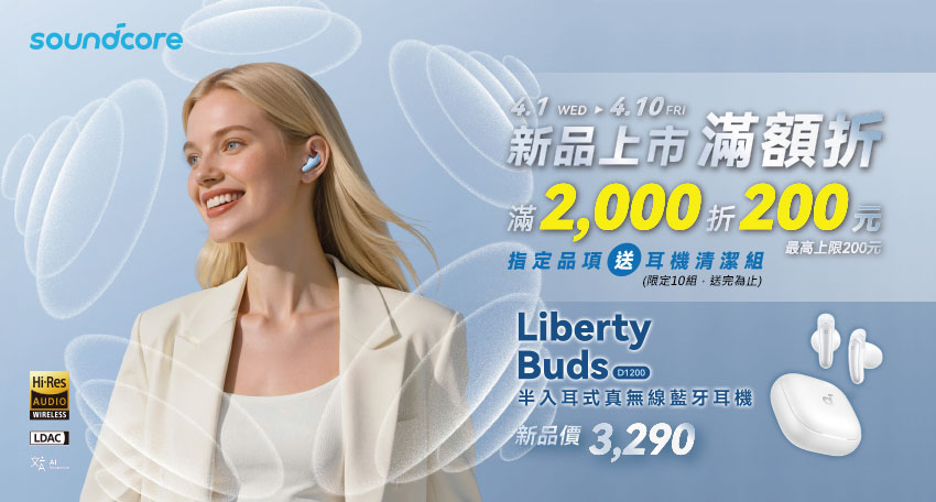 【soundcore】Liberty Buds 半入耳式降噪藍牙耳機|晨霧白