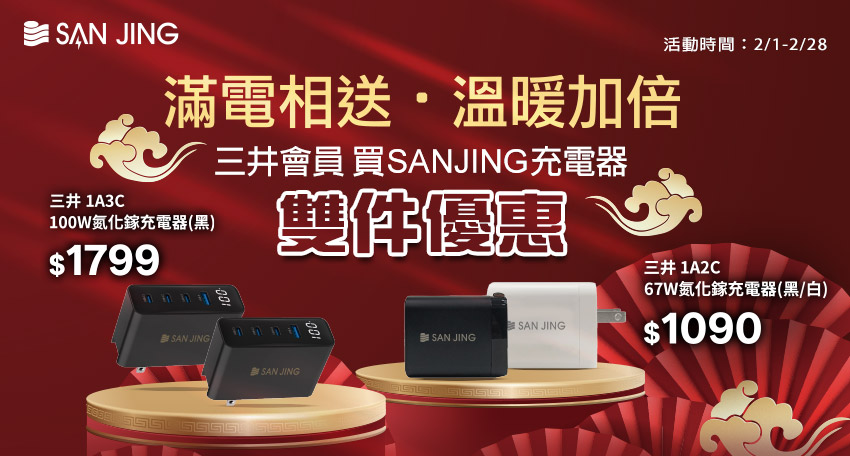 【SANJING 三井】1A3C 100W 氮化鎵充電器《超值雙入》