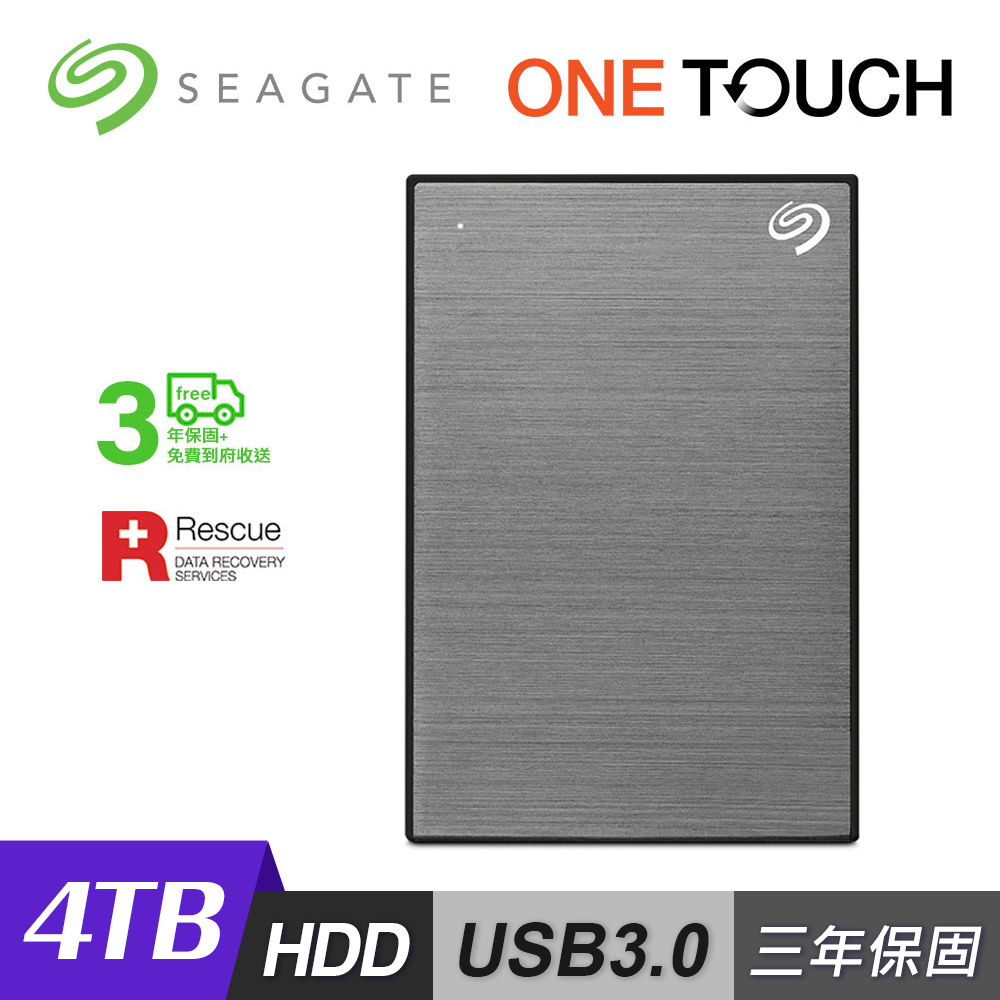 【Seagate 希捷】One Touch 4TB 行動硬碟 密碼版 灰色