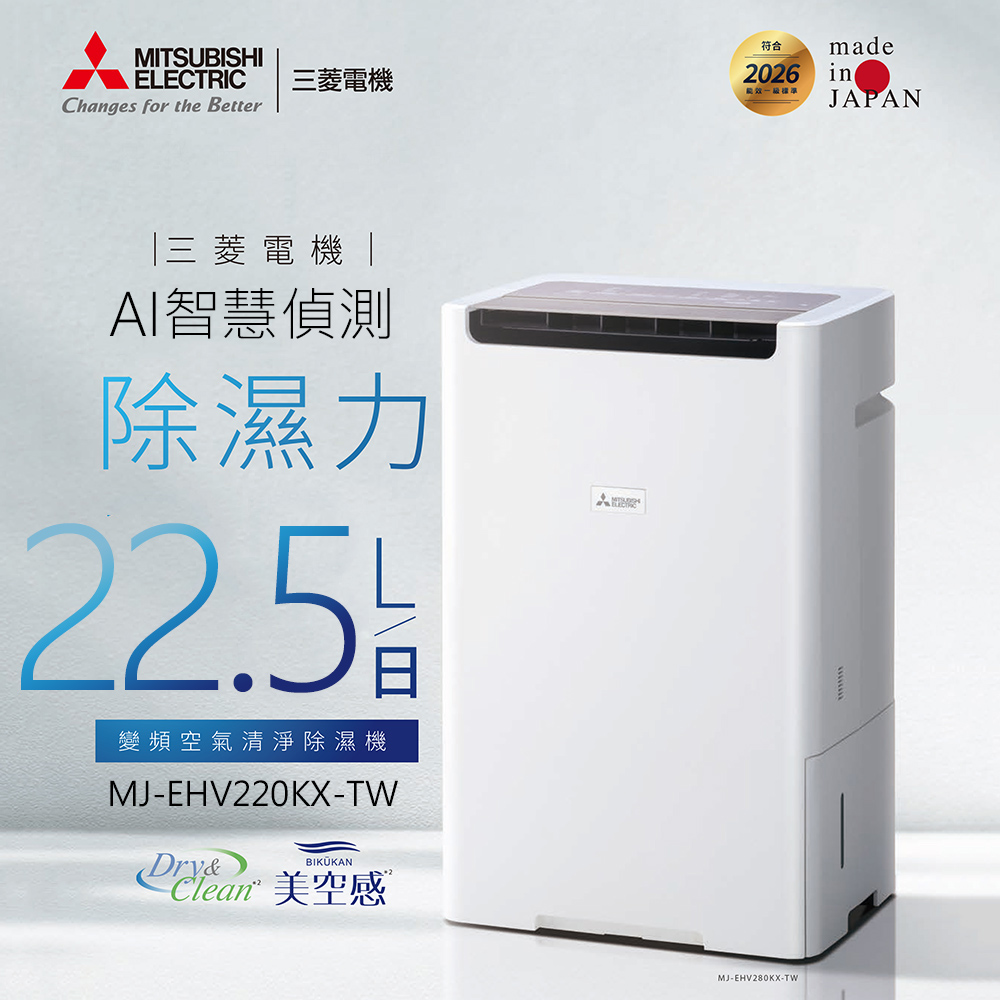【MITSUBISHI 三菱】MJ-EHV220KX-TW 22.5L變頻空氣清淨除濕機