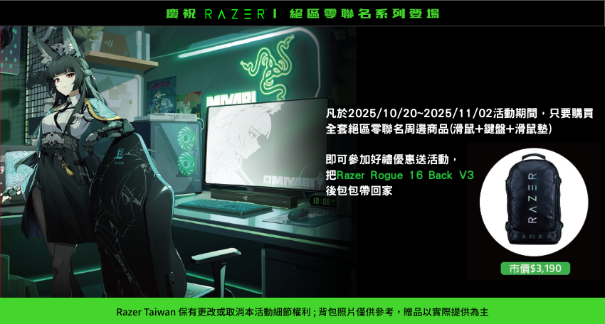 即可參加好禮優惠送活動,把Razer Rogue 16 Back V3後包包帶回家
