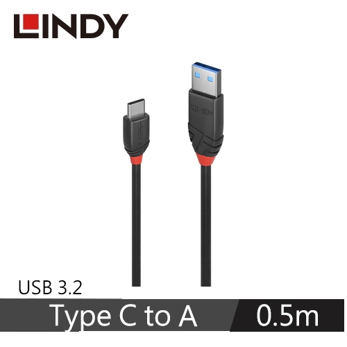 【LINDY 林帝】BLACK USB 3.2 GEN 2 TYPE-C公 TO A公傳輸線 0.5M