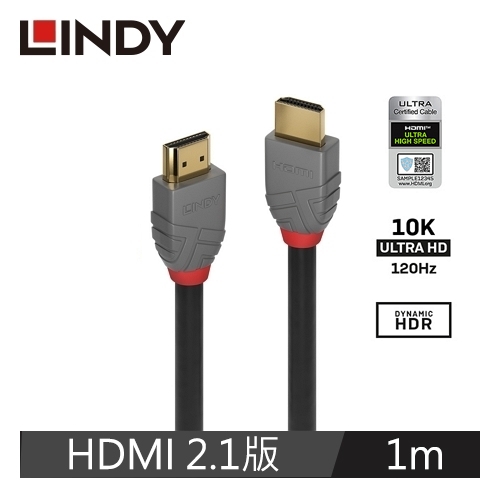 【LINDY 林帝】ANTHRA系列 HDMI 2.1(TYPE-A) 公 TO 公 傳輸線,1M 36952