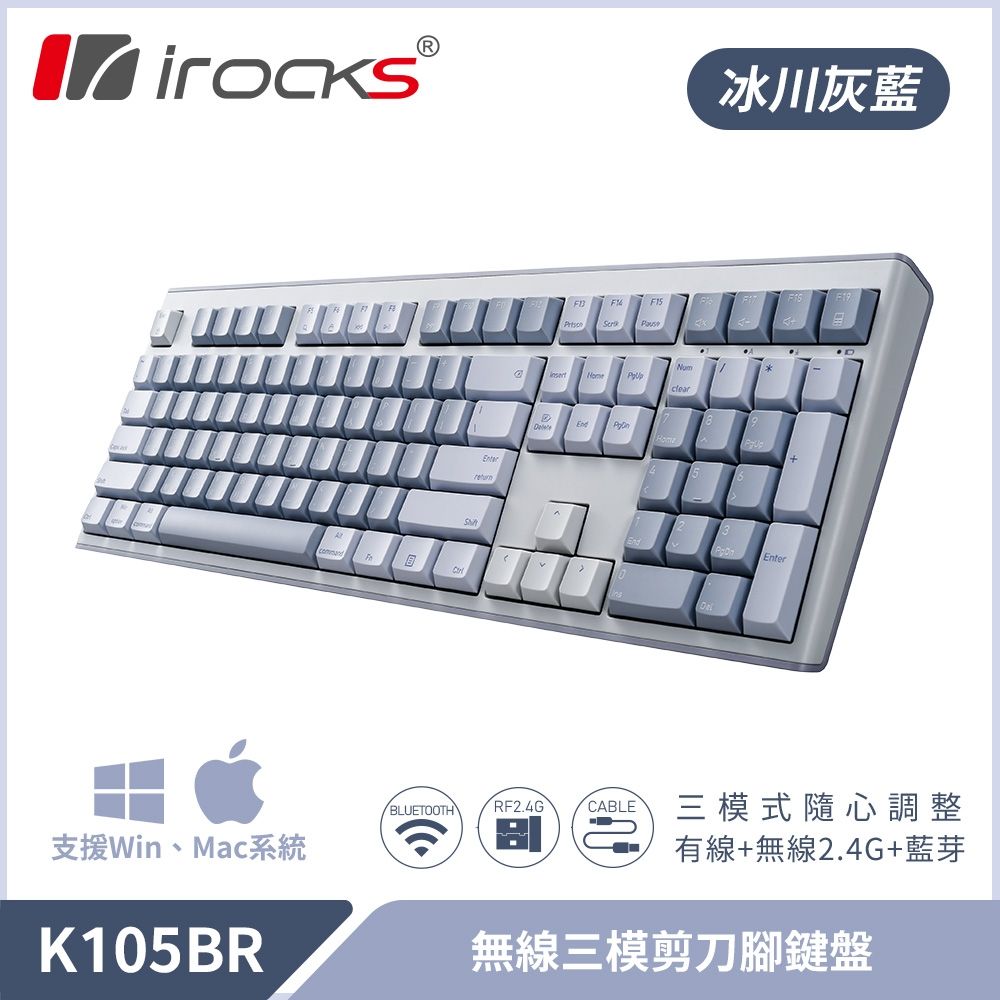 【iRocks】K105BR 無線三模剪刀腳靜音鍵盤|冰川灰藍