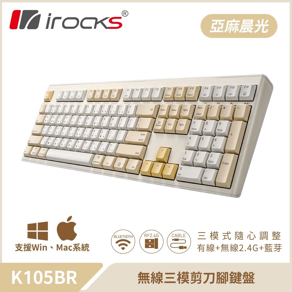 【iRocks】K105BR 無線三模剪刀腳靜音鍵盤|亞麻晨光