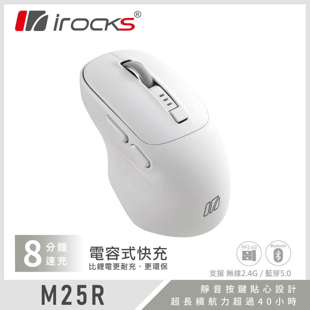 【iRocks】M25R 快充式無線靜音滑鼠 白色