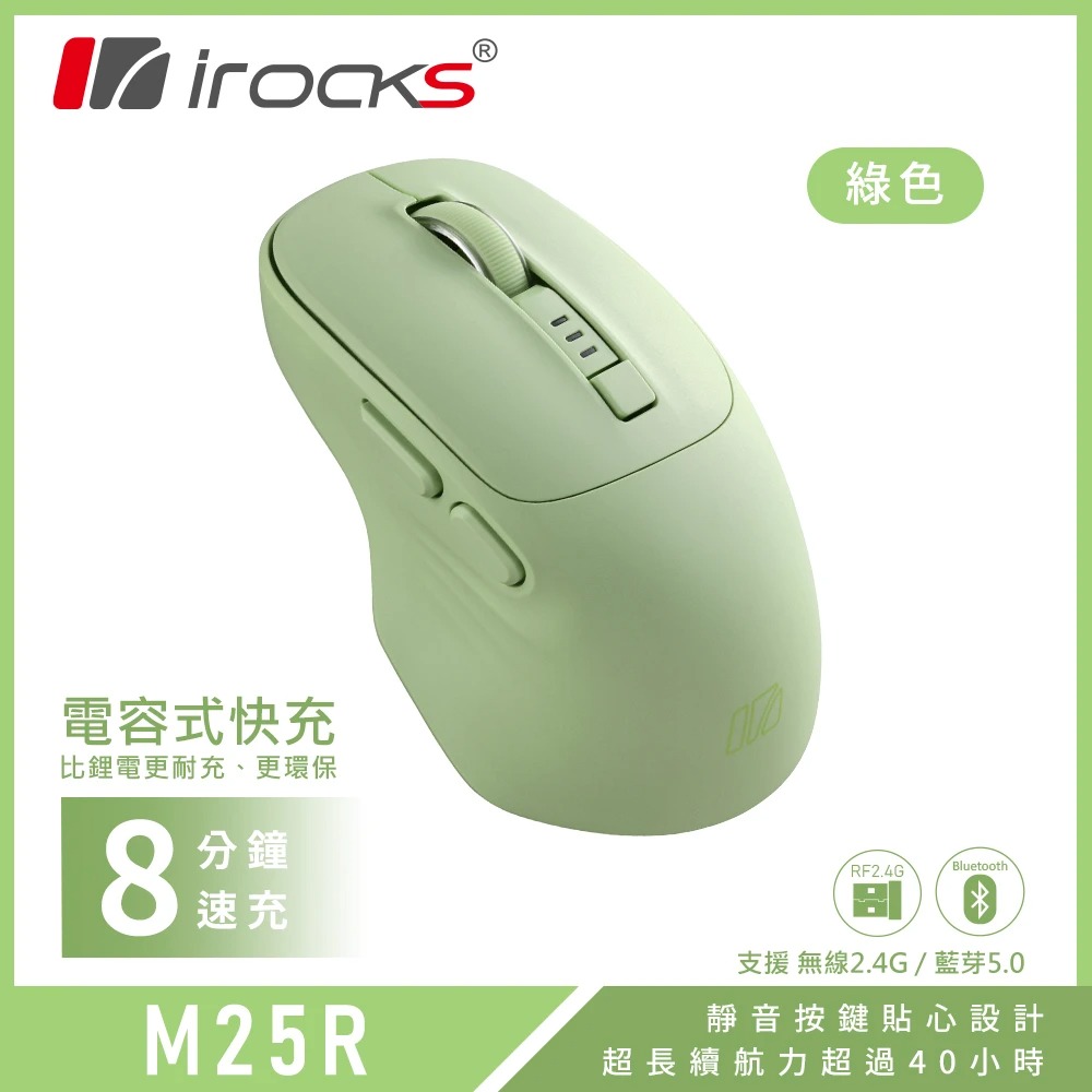 【iRocks】M25R 快充式無線靜音滑鼠 綠色