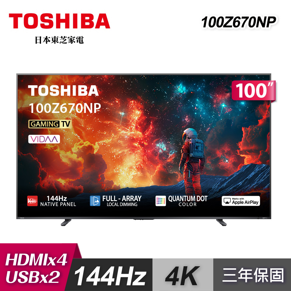 【TOSHIBA 東芝】100Z670NP 100吋 QLED 智慧顯示器|含基本安裝【福利良品】