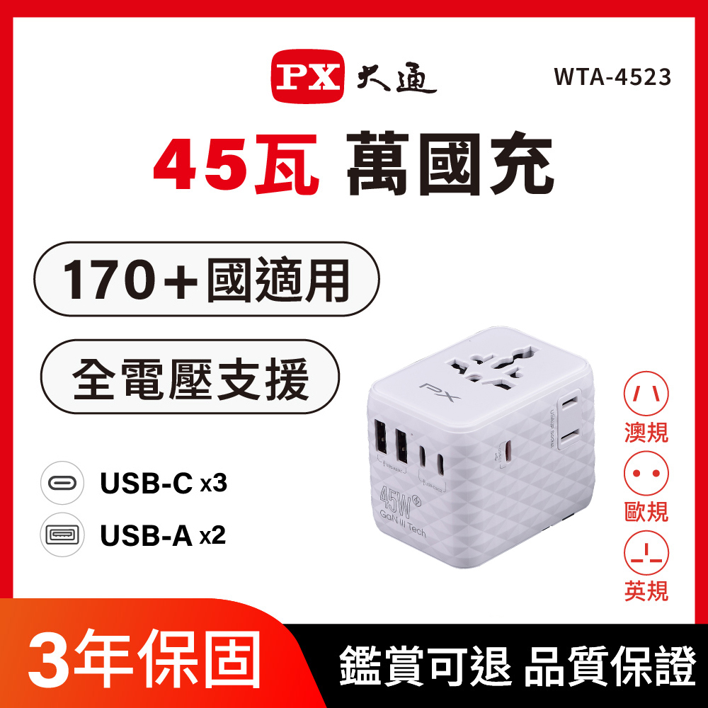 【PX大通】WTA-4523W 45W 氮化鎵萬國轉接旅行插座 白色