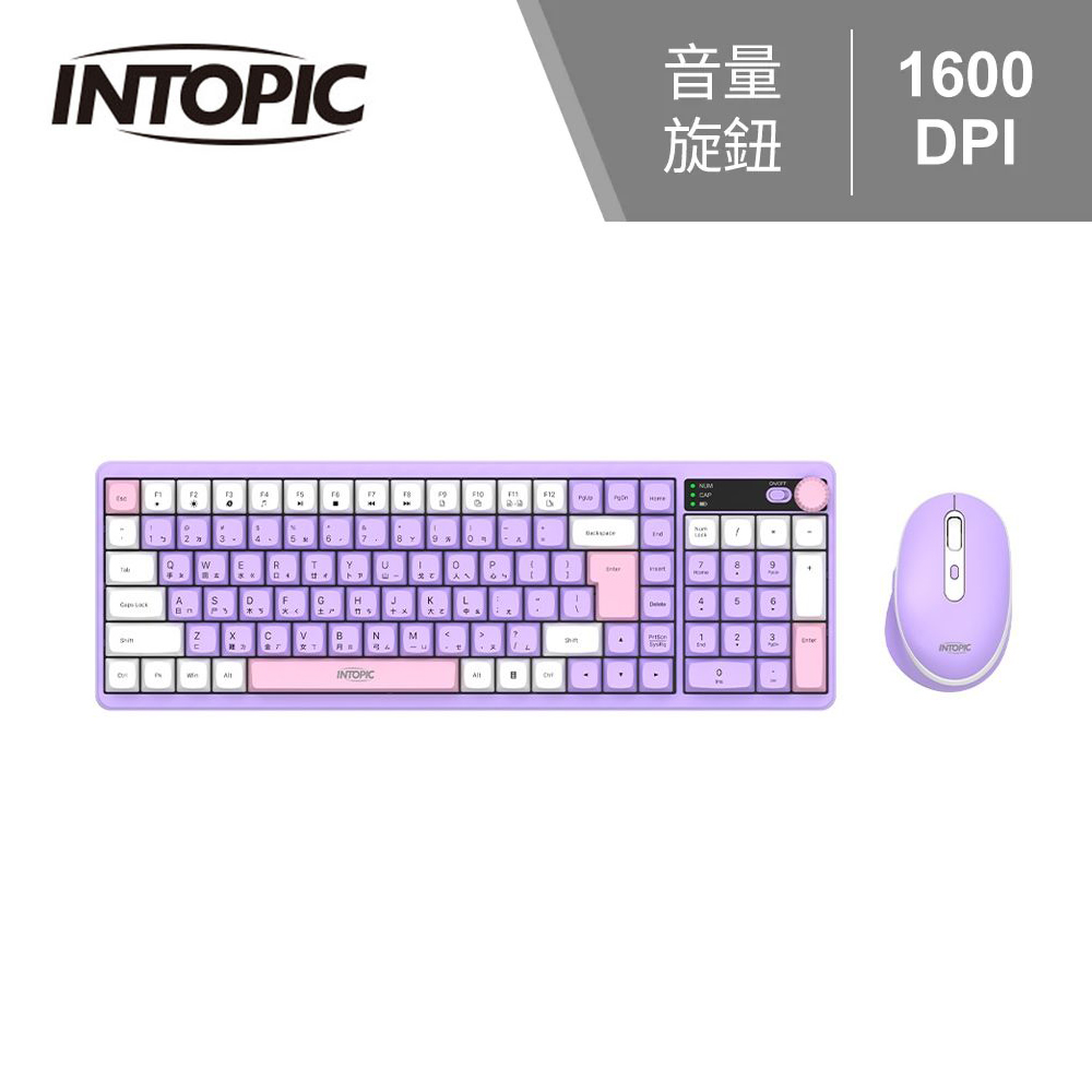 【INTOPIC 廣鼎】KCW-960 炫彩2.4GHz無線鍵盤滑鼠組|紫色