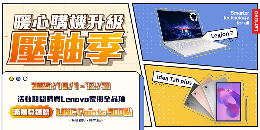 Lenovo 10-12月暖心購機升級壓軸季登錄送活動💯