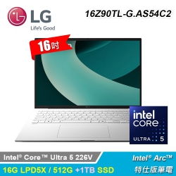 【LG 樂金】16Z90TL-G.AS54C2 16吋 U5 AI 特仕版筆電 冰雪白|升1T