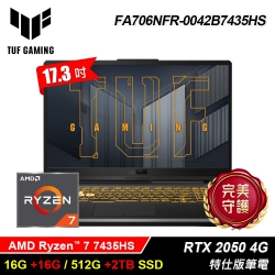 【ASUS 華碩】TUF FA707NUR-0022B7435HS 17.3吋 R7 RTX4050 特仕版筆電|升24G/2.5T