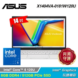 【ASUS 華碩】X1404VA-0181W120U 14吋 C5 效能筆電 白色