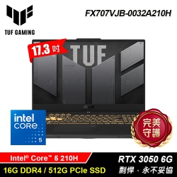 【ASUS 華碩】TUF FX707VJB-0032A210H 17.3吋 C5 RTX3050 電競筆電【福利良品】