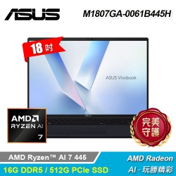 【ASUS 華碩】M1807GA-0061B445H 18吋 R7 輕薄筆電【福利良品】
