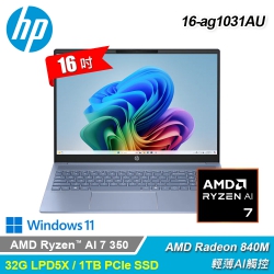 【HP 惠普】OmniBook 5 NGAI 16-ag1031AU 16吋輕薄AI觸控筆電|天空藍【福利良品】