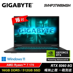 【GIGABYTE 技嘉】GAMING A16 5VHP3TW894SH 16吋 R7 RTX5060 電競筆電