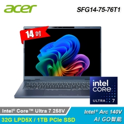 【Acer 宏碁】SFG14-75-76T1 14吋 U7 AI筆電|藍色
