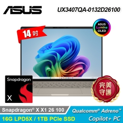 【ASUS 華碩】UX3407QA-0132D26100 14吋 X1 AI 筆電 沙暮金