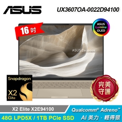 預購【ASUS 華碩】UX3607OA-0022D94100 16吋 AI筆電 沙暮金