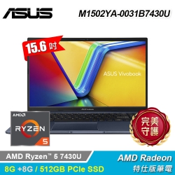 【ASUS 華碩】M1502YA-0031B7430U 15.6吋 R5 特仕版筆電 午夜藍|升16G