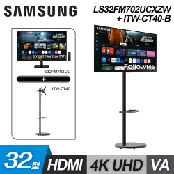 【SAMSUNG 三星】32型 4K FollowMe AI智慧聯網移動式螢幕組|黑色
