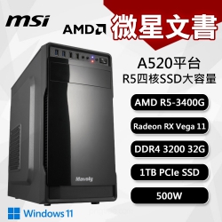 【DIY組裝】微星 A520平台 R5/32G/1T/500W/W11 四核文書機