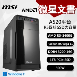 【DIY組裝】微星 A520平台 R5/16G/1T/500W/W11 四核文書機