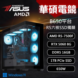 【DIY組裝】華碩 B650平台 R5-7500F/16G/1T/RTX5060 DS900 電競機 黑