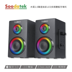 【Soodatek】木質2.0聲道炫彩LED多媒體藍牙喇叭