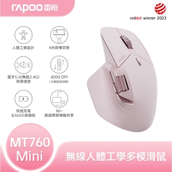 【Rapoo 雷柏】MT760 Mini 人體工學多模無線靜音滑鼠 薔薇粉