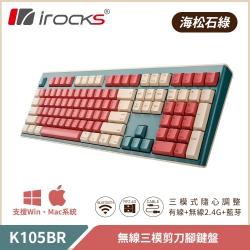 【iRocks】K105BR 無線三模剪刀腳靜音鍵盤|海松石綠