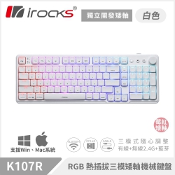 【iRocks】K107R 無線三模機械鍵盤|青矮軸/白色