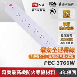 【PX大通】PEC-3766W 7切6座6尺電源延長線