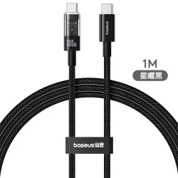 【Baseus倍思】透明CD系列 Type-C 100W 快速充電線 1m|星曜黑