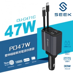 【SEEK】USB-C to C 47W 雙伸縮線車用充電器