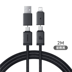 【Baseus 倍思】二拖二60W充電傳輸線-黑/2M