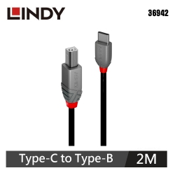 【LINDY 林帝】ANTHRA USB 2.0 TYPE-C公 TO B公 傳輸線 2M