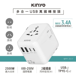 【KINYO】MPP-3517 多合一雙插座萬國轉接頭 17W