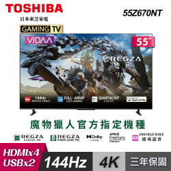 【TOSHIBA 東芝】55Z670NT 55型 4K QLED 144Hz 智慧顯示器|含壁掛安裝+架子(固定式)