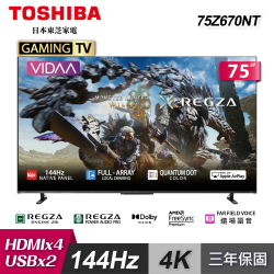 【TOSHIBA 東芝】75Z870NP 75吋 144Hz MiniLED 顯示器|含基本安裝